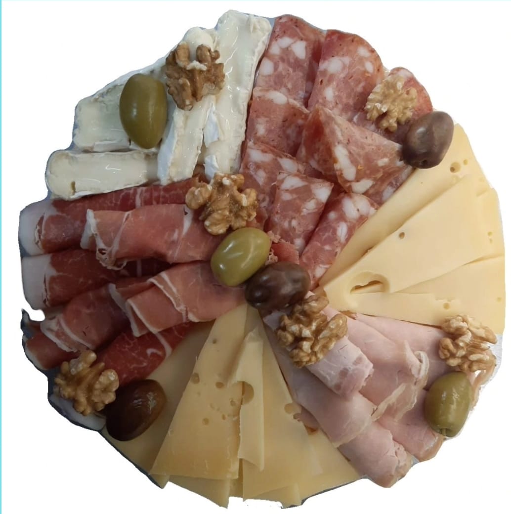 pategrass – lomo horneado – baston cagnoli varios – jamon crudo parma – queso brie – aceitunas negras – nuez mariposa